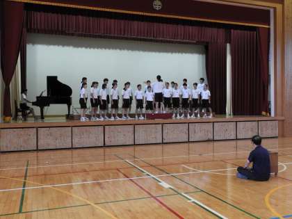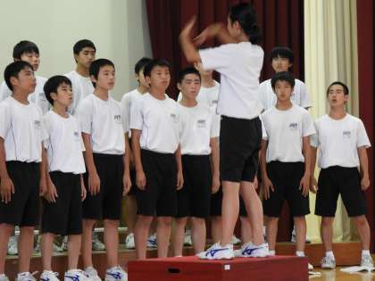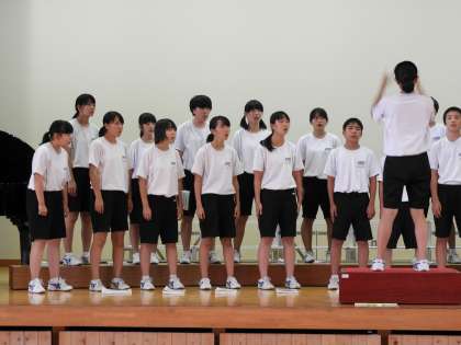 放課後の合唱練習(3年B組)です。体育館で練習風景を撮影しました。日々、うまくなっています。
