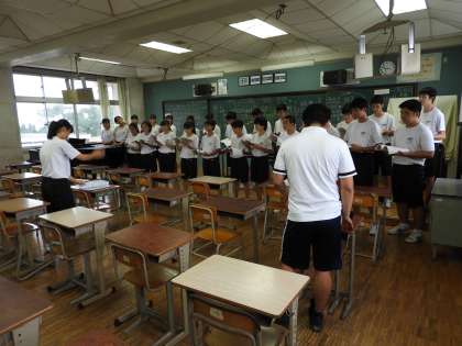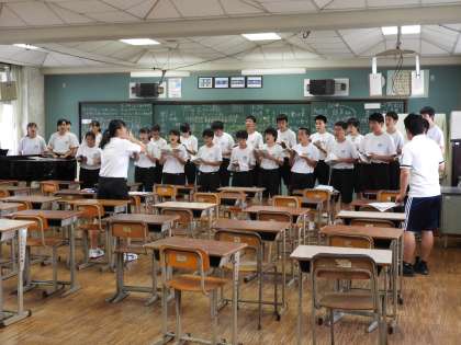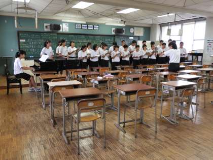 放課後の合唱練習(3年C組)です。3Eが音楽室へ移動するのが見えたので、取材に向かうと、3Cが練習していました。前回、体育館で聴いたときより、格段によくなっていました。