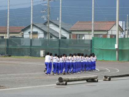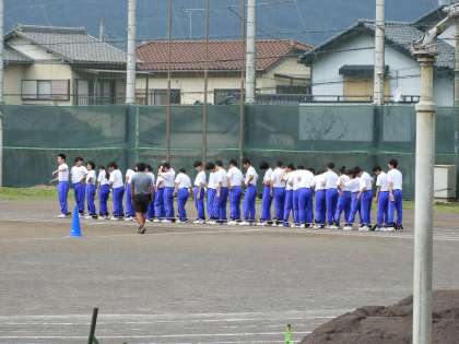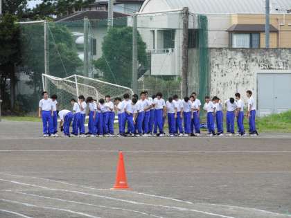授業風景(3年A組 体育)です。むかで練習が進んでいます。