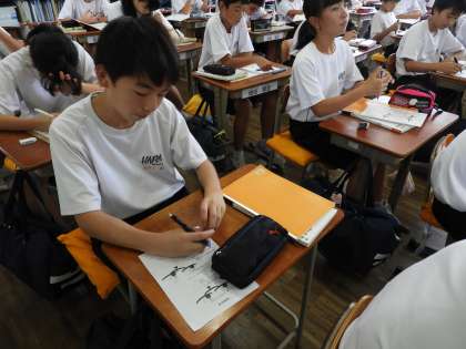 授業風景(1年A組 数学)です。1次関数の学習中です。