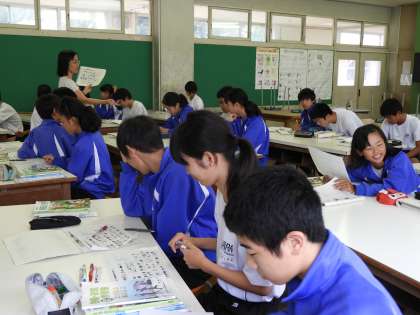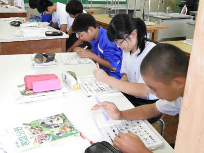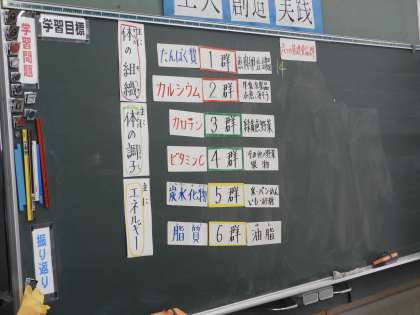 授業風景(2年C組 家庭科)です。食品の五大栄養素を学習していました。