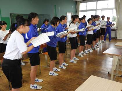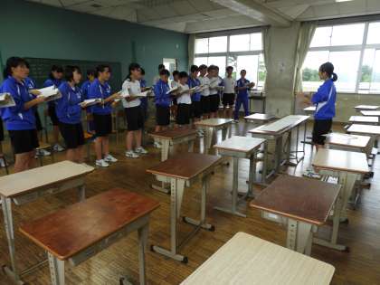 合唱練習(3年B組)です。第1音楽室へ行くと、いい声が響いていました。3年生のすごいところは、伴奏者や指揮者から的確な指示が出ていること、時間をきちんと守って終わることです。本当にしっかりしています。