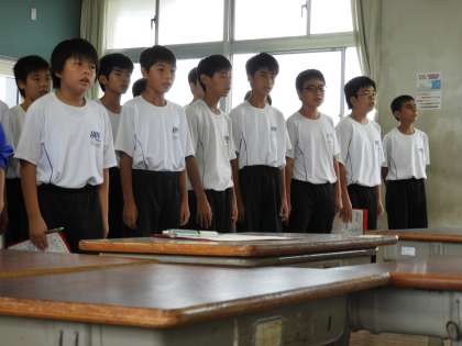 1年A組と3年C組で、合唱合同練習をやるという情報が入りました。1年A組が先に歌いました。大きい声が出ていて感心しました。