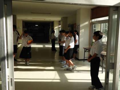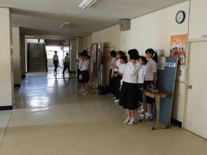 すっかりと定着している、生活委員会主催の挨拶運動です。正門が3年生、西生徒玄関が1年生、東生徒玄関が2年生の分担です。今日はB組が当番でした。