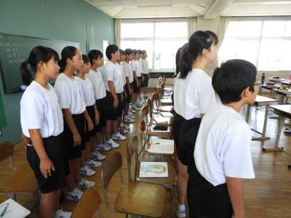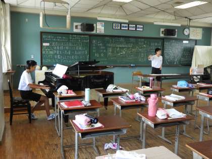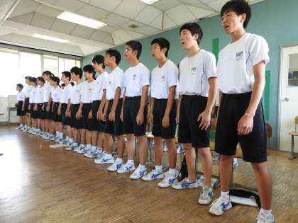 授業風景(2年D組 音楽)です。音楽室からいい声がきこえてきたので、のぞいてきました。結構いい感じになってきました。局名はコスモスだと思います。