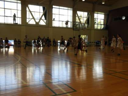 市スポーツ祭の速報(女子バスケット)です。今沢中を会場に開催されていました。暁秀中が対戦相手です。体の大きい選手がそろっていますが、スピードは原中がまさっています。接戦でしたが、少しずつ差をつけ始めました。