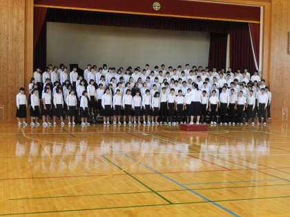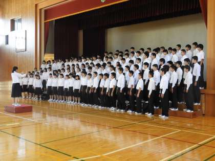 今朝は、3年学年集会があると聞きましたので、体育館へ足を向けると、学年合唱の体形になっていました。連合音楽会がもうすぐですので、練習に余念がありません。