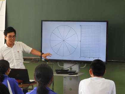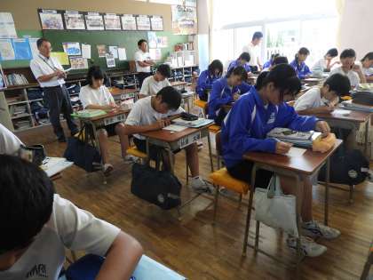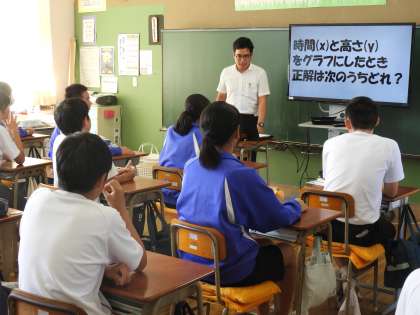 若手教員研修(3年B組 数学)です。本日は、教職員研修センターの芝コーチが来てくださいました。