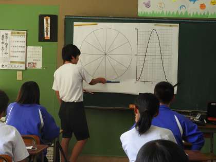続いて、電車の料金と時間の関係を表すグラフについて考えました。いろいろな案が出てきて発表も聞いていておもしろかったです。