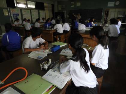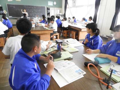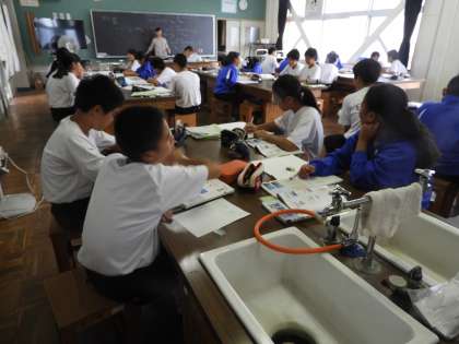 授業風景(1年B組 理科)です。ピペットの使い方を練習するそうです。