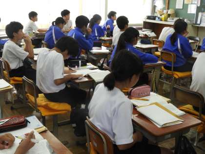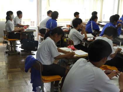 授業風景(2年D組 国語)です。「走れメロス」を習っていましたが、メロス以外の人に焦点を当てるスピンオフを創作するようです。