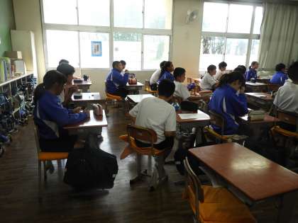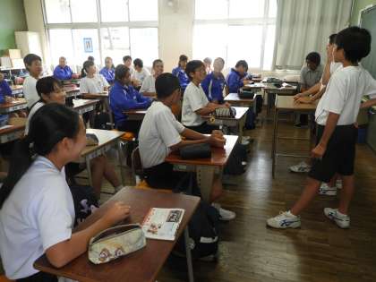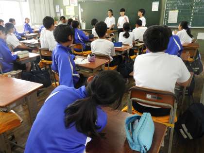 学級活動(1年B組)です。班決めをやっていました。二役がしっかり進行しています。