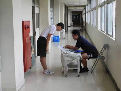 学級活動(3年C組)です。こちらも廊下で進路面談をやっていました。