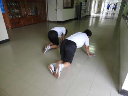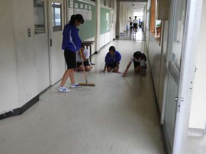清掃の時間の取り組み具合で、学校が正常に機能しているかがよくわかります。さっと校内を回ってきました。先生方があちこちにいて、一緒に清掃しています。これが原中の先生方のすばらしいところです。