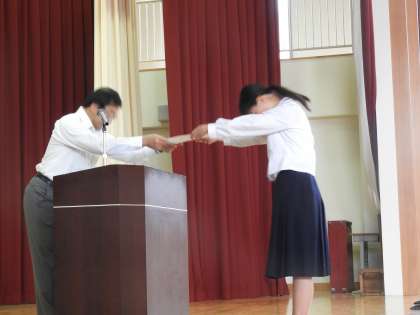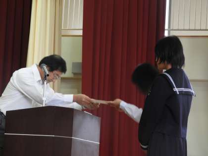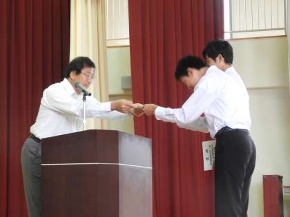 男子ソフトテニス部は、個人戦で1ペアが、5位に入りました。水泳で総合部の橋本さんが背泳で3位に入賞。英語弁論に出場した丹所さん、小倉さんの表彰も行いました。