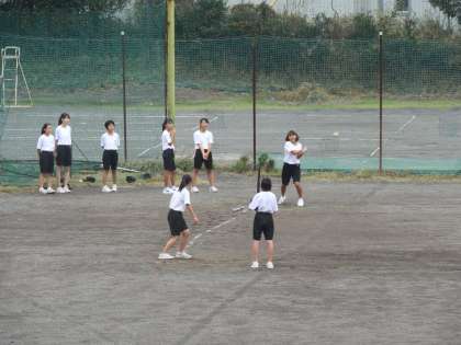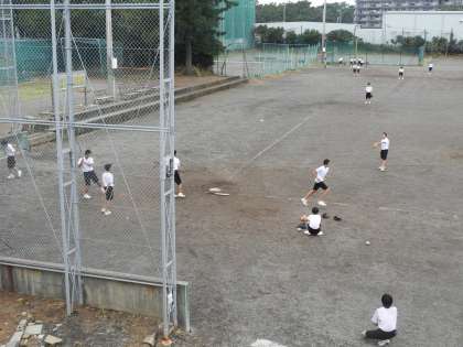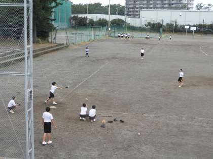 授業風景(2年B組 体育)です。男女の分かれ、ソフトボールの試合をやっていました。結構、バットに球が当たり、ヒットが出ていました。