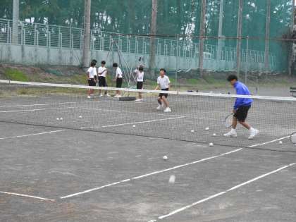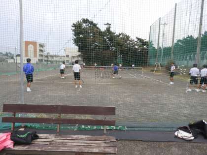 男子テニス部です。台風で切れていたバックネットのロープも市の学校管理課で直してくださいました。せいせいと練習できてありがたいです。