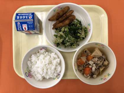 米飯、肉豆腐、めひかりフライ、ごま入りおひたし、牛乳でした。