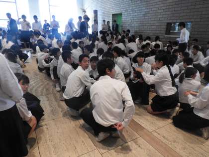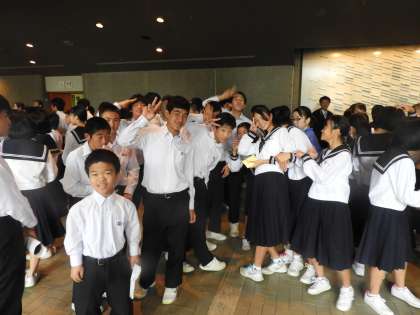 10月17日、沼津市中学校連合音楽会が午前の部、午後の部に分かれて実施されました。原中は午前の部に参加しました。沼津市民文化センターに会場に着くと、ホールへの入場前でした。偶然、前任校の第一小の卒業生や大平小の卒業生も一緒になり、声をかけてくれました。3校の知っている生徒たちの歌声を聴けるなんて、幸せだなと思いました。一人、主催者に感謝していました。