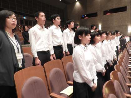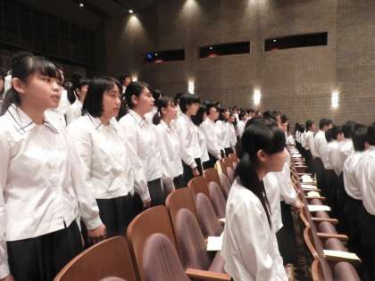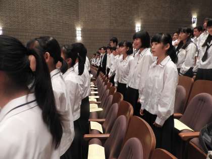 みんな一生懸命、歌っています。原中学校は6番目の発表です。
