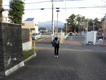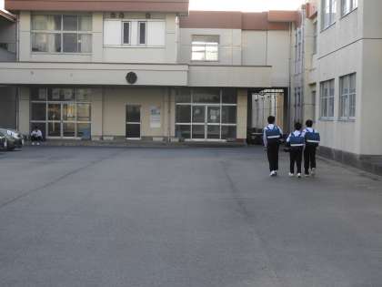 今朝は朝一番に来ている生徒たちを迎えようと7時少し前に曽於tに出ましたが、もう3年生が玄関前に座っていました。続いて1年生男子が3名、2年生の方も女子が玄関に向かっていました。正門では、いつも教室の鍵を取りに来ている小針君に会いました。低英な挨拶を伝授しました。