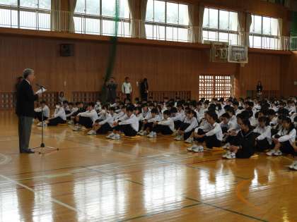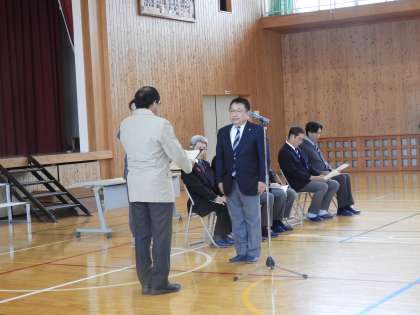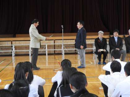 市民憲章額を確かにいただきましたという拝受書を学校長が読み上げ、ライオンズクラブの方にお渡しいたしました。