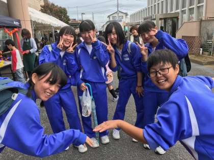 原地区コミュニティ文化祭で、生徒会メンバーがお餅をつきます。3年生が面白い顔をしてくれました。