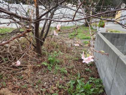 原中南門の東にある桜が、季節外れの花を咲かせていました。雨や台風が続いて木々へのダメージが大きかった秋の初めですが、暖かい日が続いて、桜の木も勘違いをしたようですね。