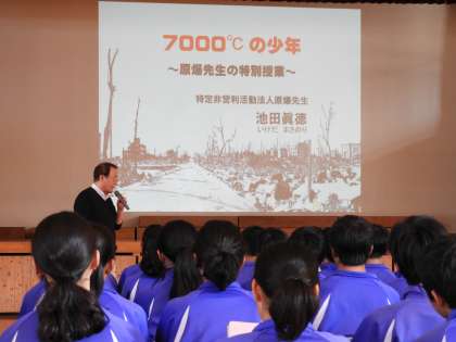 池田眞徳先生は、父親の原爆被災地の救援活動を著書にされ、この活動を始められたそうです。「7000°Cの少年 新ヒロシマの九日間」という著書には、父親を主人公にして体験が綴られており、先生が父親の代わりに淡々と惨状を語っていきます。