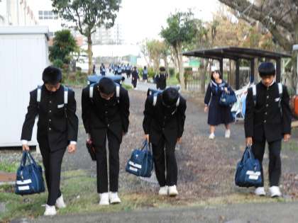 正門に戻り、挨拶運動を続けました。こんなに大勢に広がっているかと思うと、うれしくなります。まだまだ、挨拶の苦手な人もいますが、やってみると、気持ちの良さがわかります。試してみてください。
