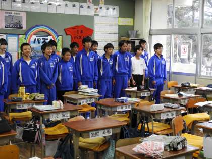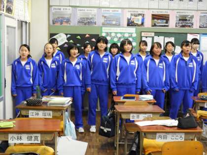 帰りの会(2B合唱練習)です。3年から2年の教室へ急ぎました。何とか、間に合いました。2年生も合唱を頑張り始めました。