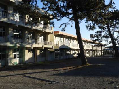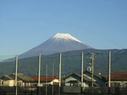 学校に出勤すると、運動場の向こうに富士山がくっきり見えました。さわやかな朝の学校の風景を撮影しました。