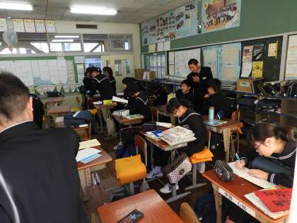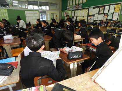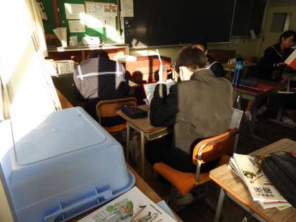1年C、D組の朝の教室の様子です。おのおの勉強に励んでいます。