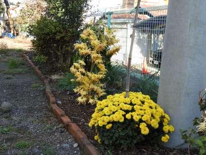校地の東にある池の前の花壇に、ご近所の方が菊の花を植えてくださいました。その菊が今、満開となり、校庭を彩っています。ありがとうございます。