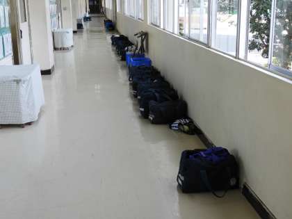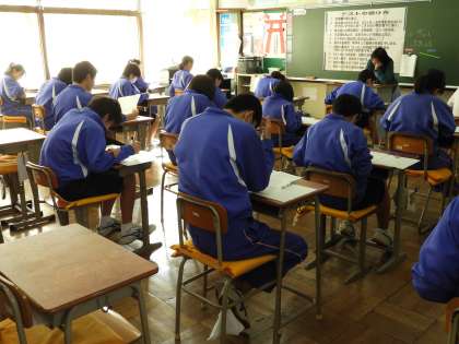 第4ステージテストに取組中(3年)です。2年生は朝、回ったので、3年生の様子を見てきました。廊下には鞄が気持ちよく並んでいました。3年E,D組も頑張っています。