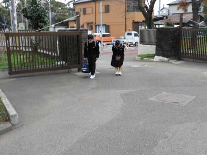 週明けの朝です。すっかり秋めいてきました。今日は雲が空に広がり、小雨がぱらついています。今日も挨拶運動に行ってきました。
