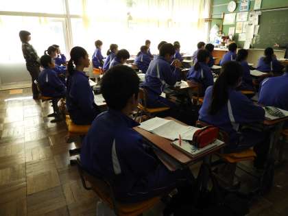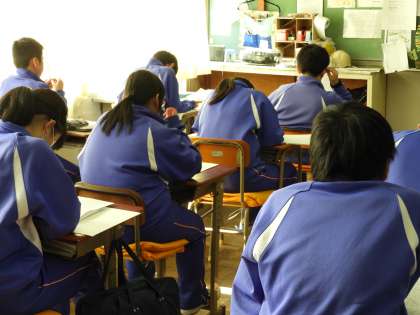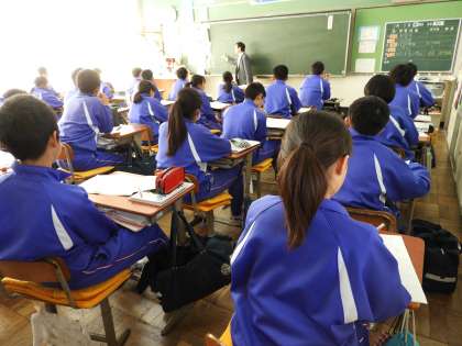 授業風景(2年D組 数学)です。渡邉先生がテストの必勝法を伝授してくれていました。そういえば、明日は、1,2年生の学力調査が実施されます。