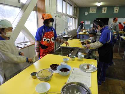 もう1品、かき玉汁も調理中でした。生徒たちは楽しげでした。家でも作ってくれるといいなあと思いました。