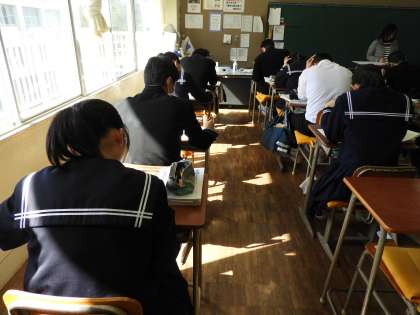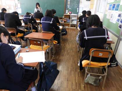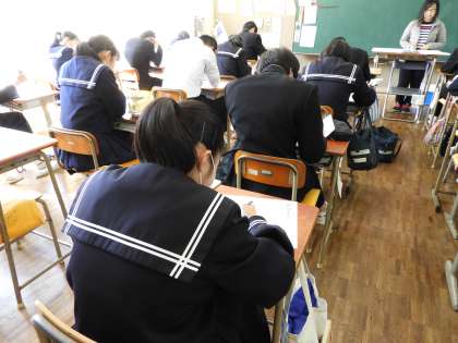 授業風景(3年A組 国語)です。3月5,6日と公立入試があります。復習テストに取り組んでいます。