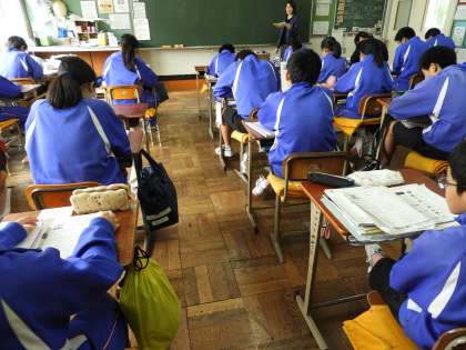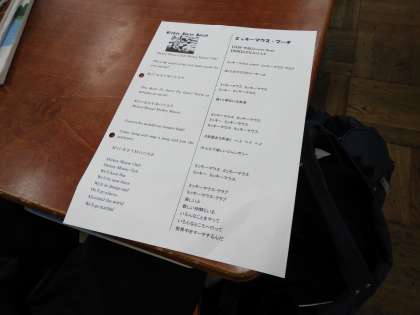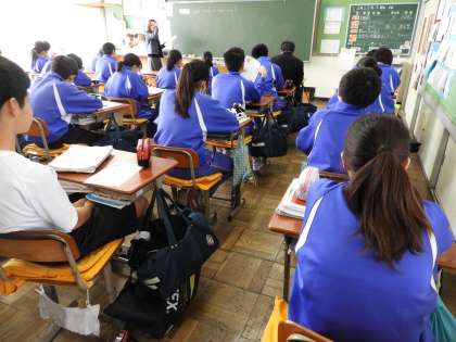 授業風景(2年D組 英語)です。授業のはじめの方でした。ミッキーマウスマーチだと思いますが、英語版の歌を教わっていました。