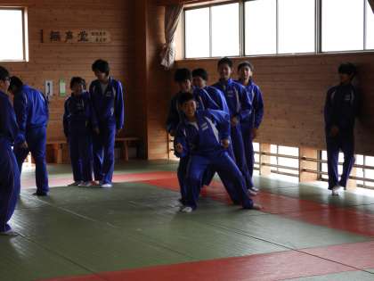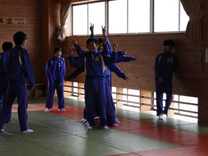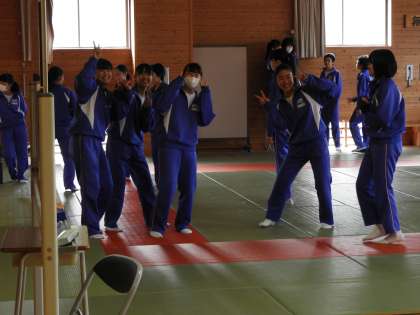授業風景(2年B組 体育)です。体育館の武道場で、創作ダンスの練習中でした。みんな結構上手で、楽しんでいました。