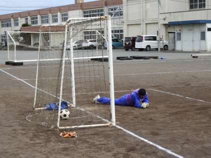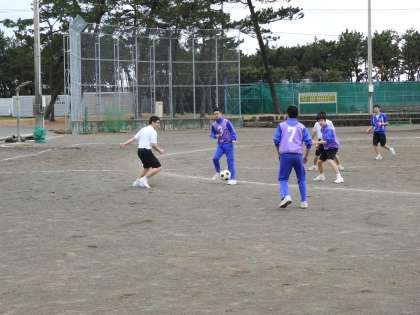 授業風景(3年A組 体育)です。5時間目に外へ出ると、3Aが体育でサッカーをやっていました。サッカー部だけでなく、バスケ部も野球部も運動神経がいいので、おもしろい戦いになっていました。