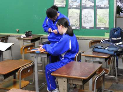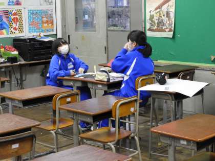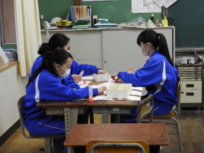 放課後の部活動(美術部)です。ひな祭りに向けての掲示作りと、4月を象徴する桜を作っているようです。