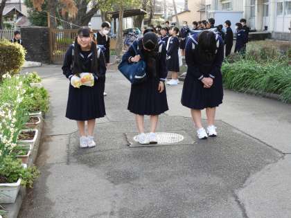 「丁寧に 心をこめた あいさつを 笑顔で交わす 原中生」。一首できました。