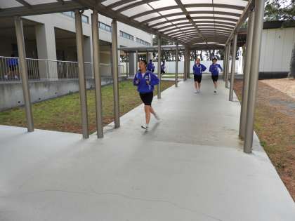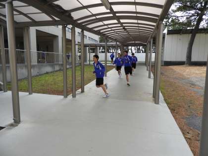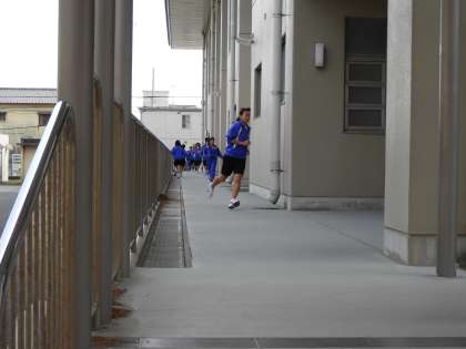 授業風景(2年B組 体育)です。2年生はダンスかと思ったら、体育館周りで持久走をやっていました。タイムがあるようで必死に走っていました。