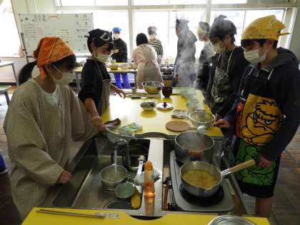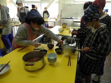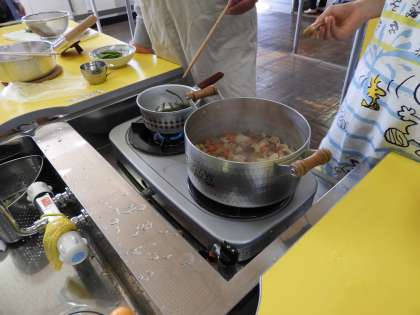 授業風景(2年D組 家庭科) アフターです。筑前煮はほぼできあがっていました。いいにおいです。