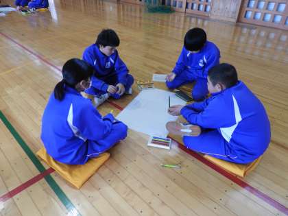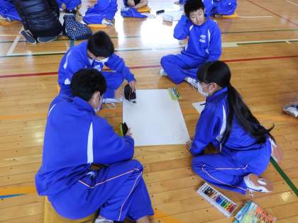 最後に、「名画作り」をやりました。ばらばらの図形を、順番に描いていくのですが、一つも同じ絵がありません。