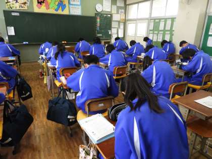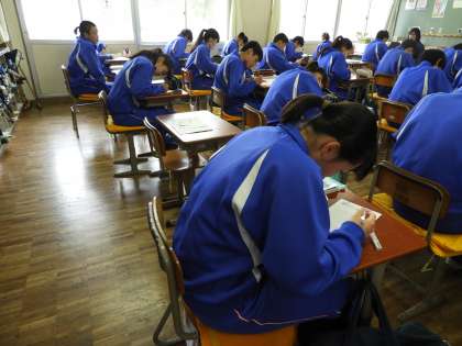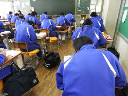 授業風景(2年B組 数学)です。先ほどの時間は、別室へ行っていたので、次の時間、参観しました。チェックテストに取り組んでいました。