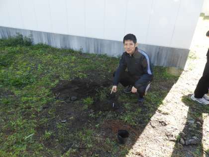 5年後の成人式、25年後の2度目の成人式で、集まる機会があったら、この苗木をもう一度、見てほしいと思います。枯れてしまわないことを祈るばかりです。ボランティアの生徒が道具を片付けてくれ、気持ちの良い行事になりました。
