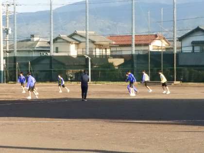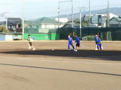 運動場では、ソフトボール部、サッカー部、ソフトテニス部が練習をやっていました。